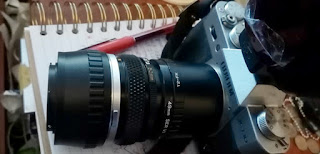 I then turned my thoughts to constructing an alternative close-up lens system and remembered the trick from many years back of reversing a lens to get a cheap macro. I constructed a reversing ring from a redundant T2 lens mount and ring and used an Olympus 50mm lens from my film camera. This resulted in a lens with around 1.5:1